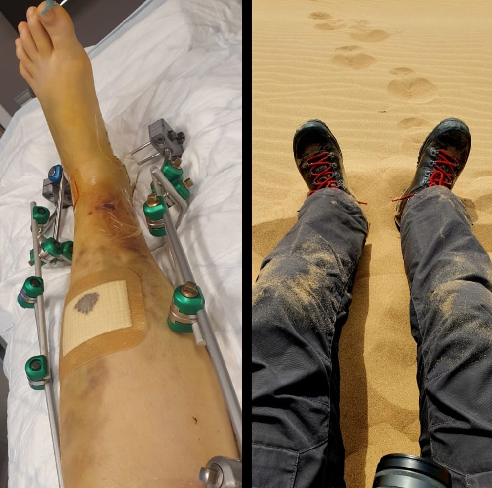 While I was hiking in Greenland a year ago, I broke both leg bones above the ankle of my left leg. Even though I am comfortable with being outside in all possible weather scenarios and have countless kilometers in my feet, occasionally, the proverbial excrement just has to smash into the fan – and the accidents just have to happen. At first, I was extremely offended by my own miscalculated step and it took a lot of time to understand that things just happen and even more to become accepting of this incident.