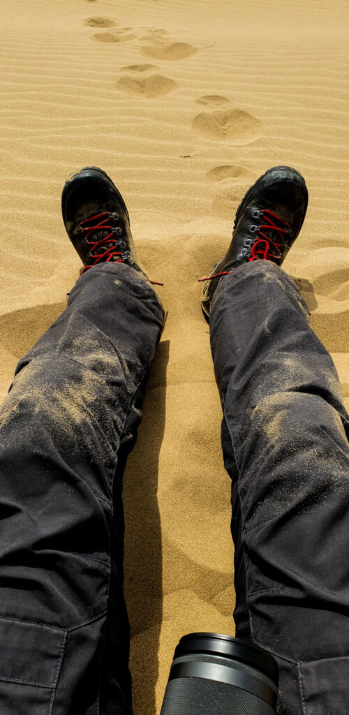Warm sand, dripping between my fingers while sitting in the middle of nowhere.