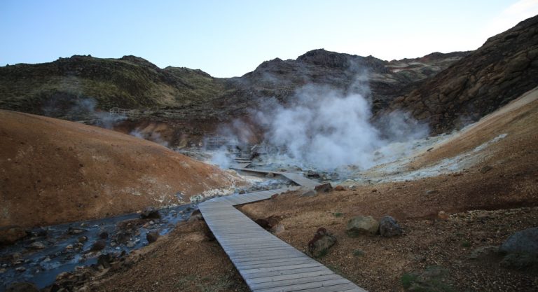 Uz jezero Kleifarvatn nalazi se geotermalno područje Krysuvik. Do toga trenutka nisam nikada bila na ičemu sličnome i stoga mi je geotermalno polje Seltun bilo vrlo zanimljivo. Polje je jedno od područja s termalnim izvorima (skupa s obližnjim lokacijama Hverahvammur, Hverahlið, Austurengjar i Sveifla unutar Krysuvika). Krajolik Seltuna oblikovala je erozija vjetrom, vodom, pomoću ljudskoga djelovanja i vulkanske aktivnosti čitavoga … Continue reading Seltun polje