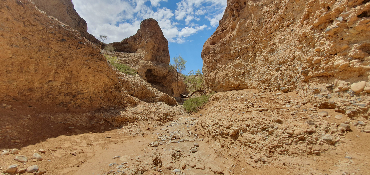 There is a canyon nearby, called Sesriem; its length measures approx 1 km of raw beauty. Due to the aforementioned Tsauchab river’s flood it has been affected greatly by a tremendous amount of water and became essentially unhikeable. Still, I took time to explore it with the guide while the others, exhausted by extreme heat, stayed in the vehicle.