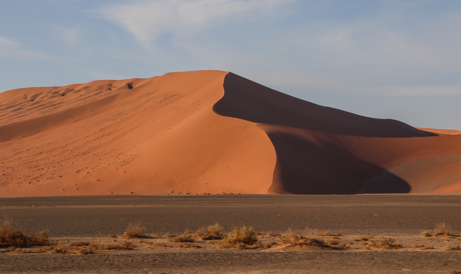 The Namib desert’s sand is incredibly beautiful to look at. It was a full blown feast for the eyes. The morning light illuminates it and gives it a beautiful deep shade of red, which combined from the morning shadows on one of the sides of the dunes gives a true visual spectacle. As we drove and the angle changed, the scenery would shift significantly. There are no bad shots. And it’s very hard to pick out even tens of photos which need to end up here.