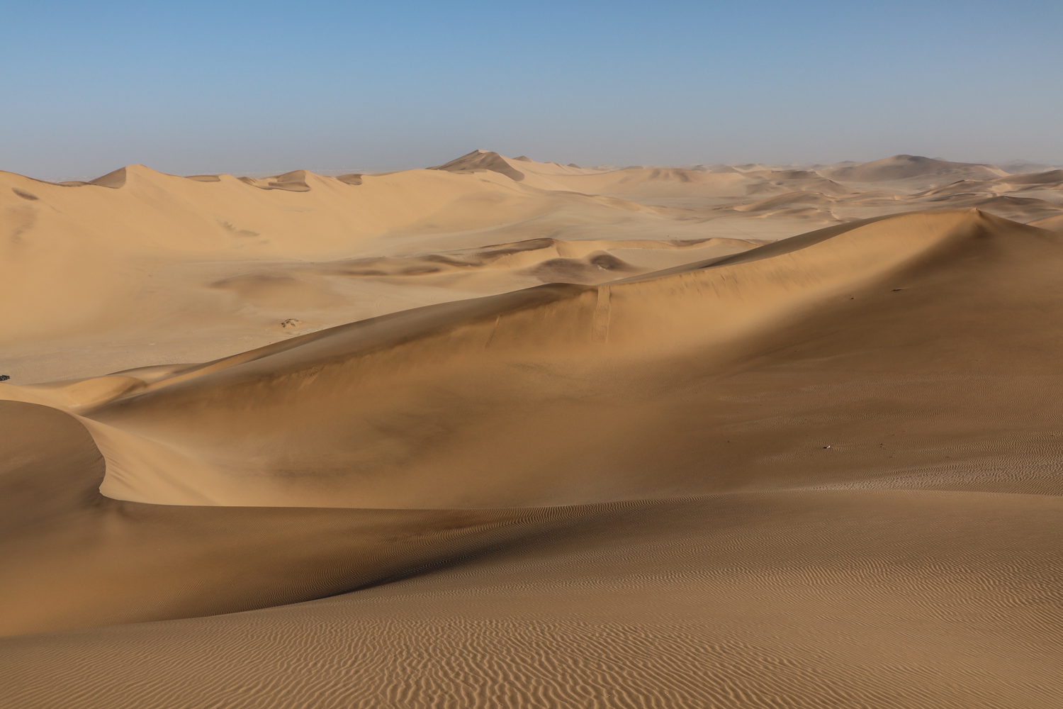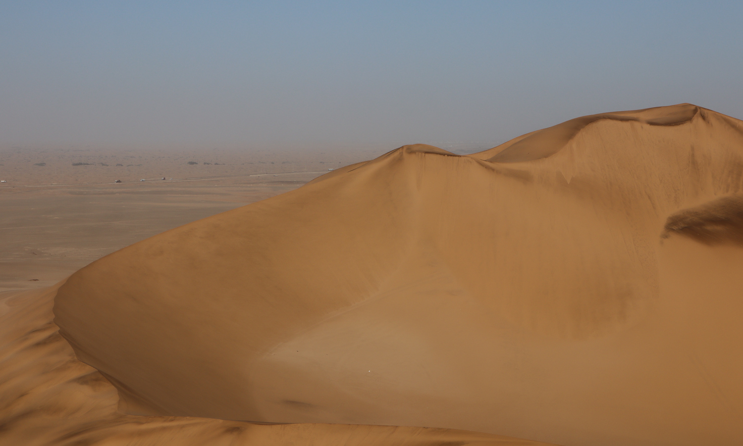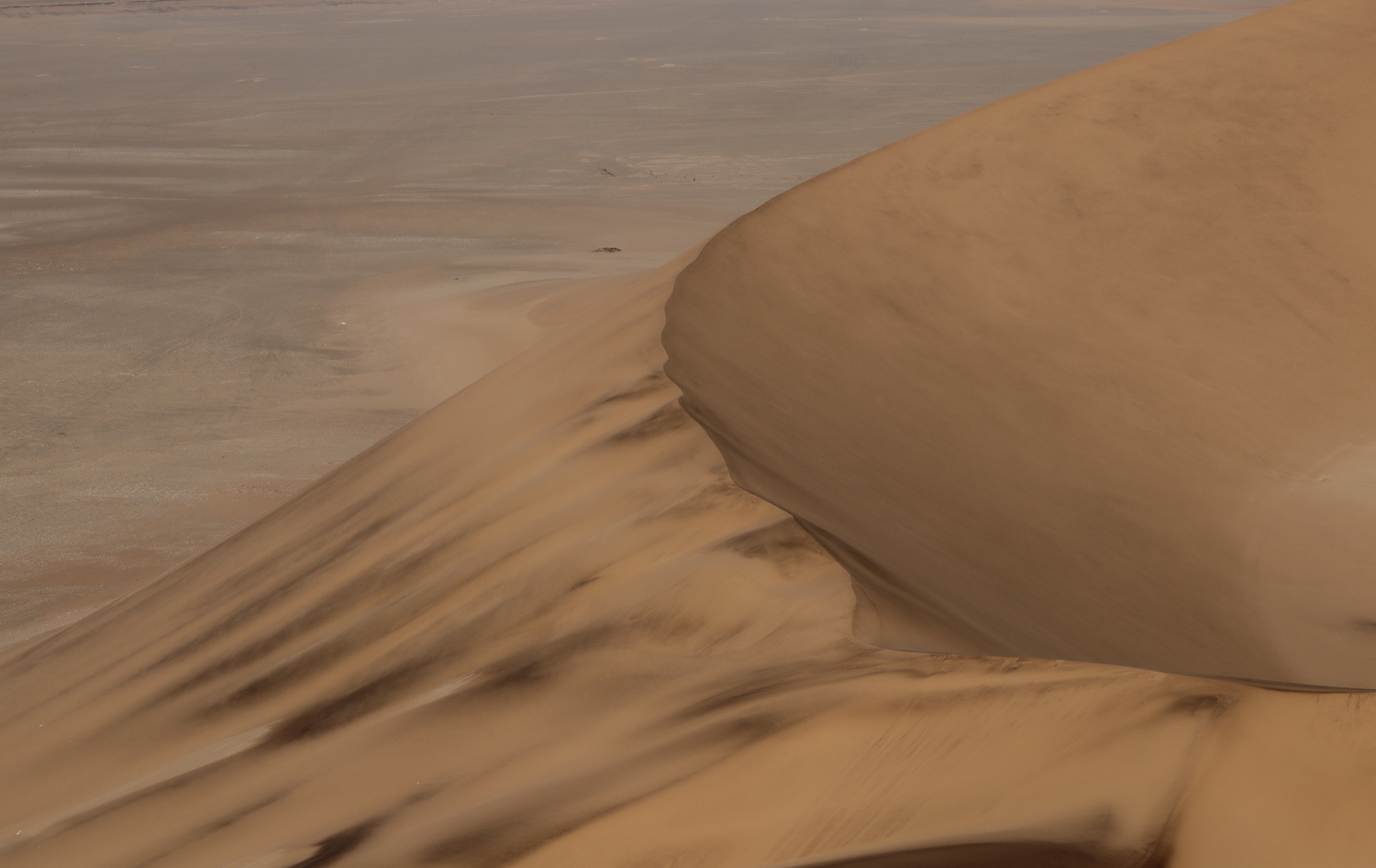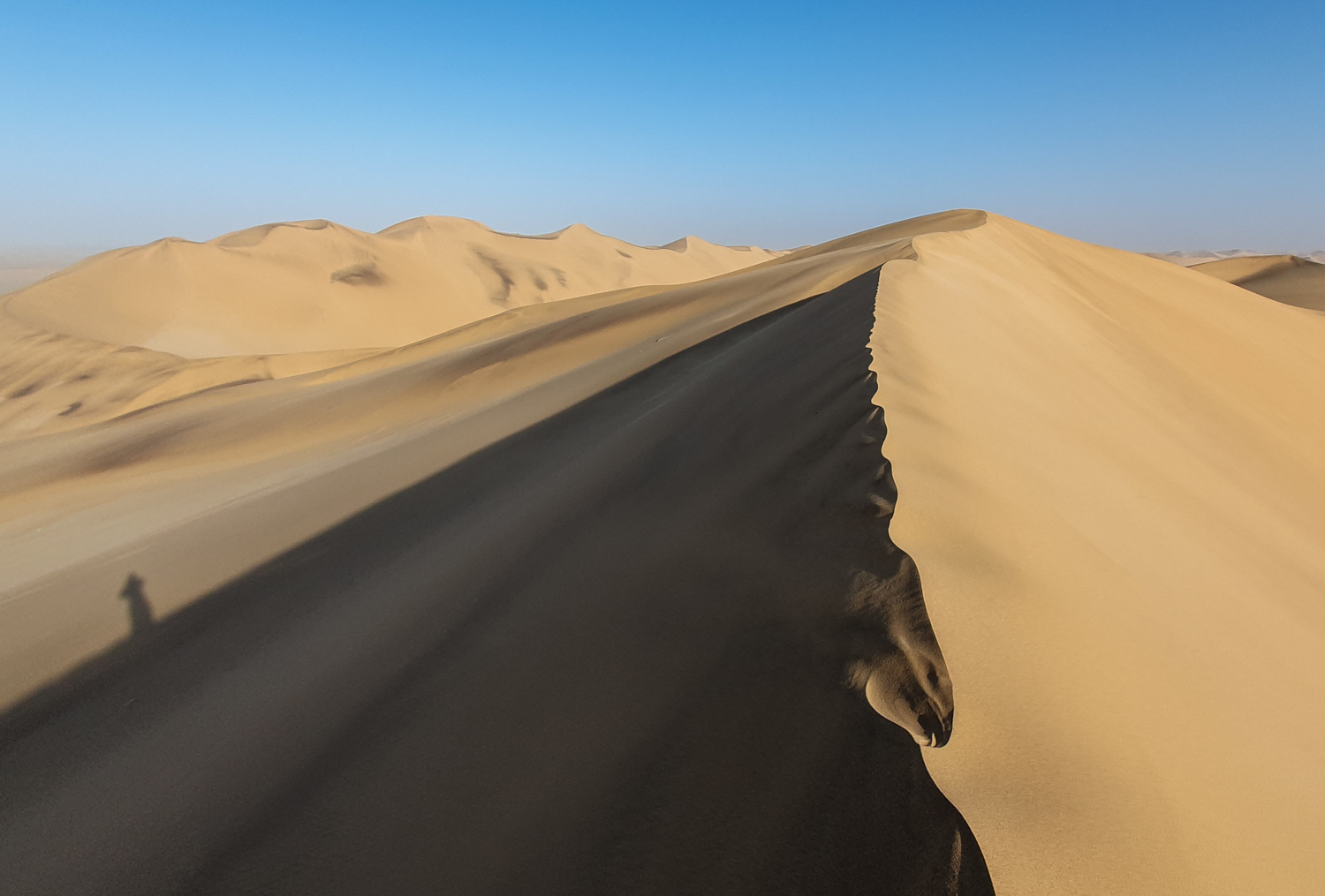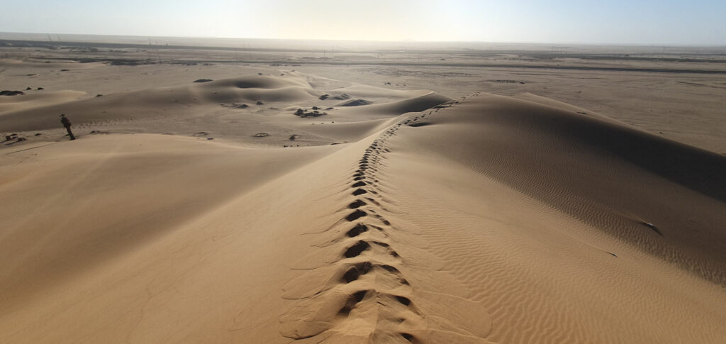 I really took time to enjoy it. The climb to the top was superb and it took me approx 20-25 min. It was warm but the wind was blowing from every direction at every second. The steeper parts demanded that I crawl on my knees along the ridges, with my fingers dug deep into the early morning cold sand like Wolverine. The top layer of sand crumbles each time my feet penetrate it so it’s a bit challenging on the steeper parts, but reaching the flatter ones while being blown by the ocean winds heading towards the continental regions of Namibia felt like a proper blessing.