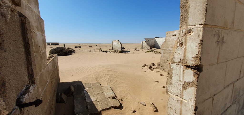 One and a half kilometers from the Dune 7 lie the quiet remains of a once-active quarantine station. These ruins mark a forgotten chapter in the region’s colonial and maritime history. Constructed during the era of German South West Africa, the station served a critical role in public health policy. It was designed to isolate and monitor passengers arriving by sea, particularly during outbreaks of infectious diseases. The port of Walvis Bay was an important entry point for goods and people, necessitating strict health controls.