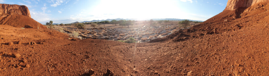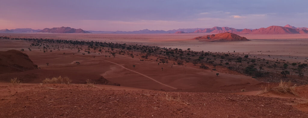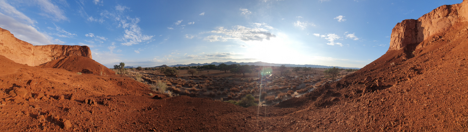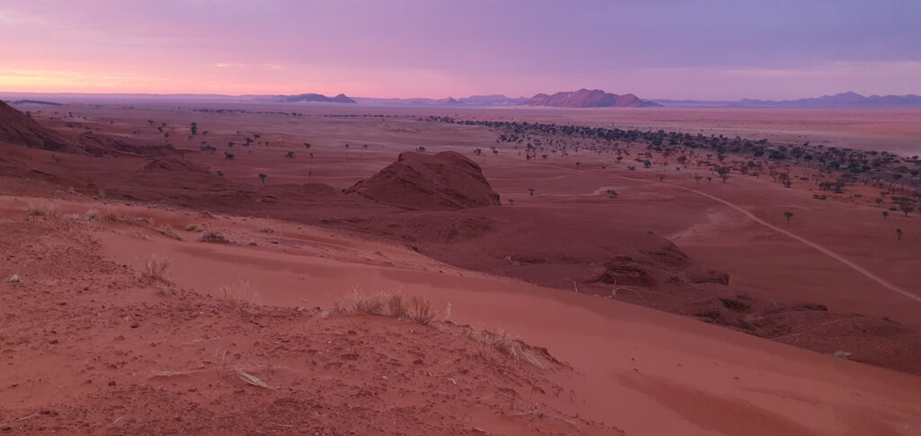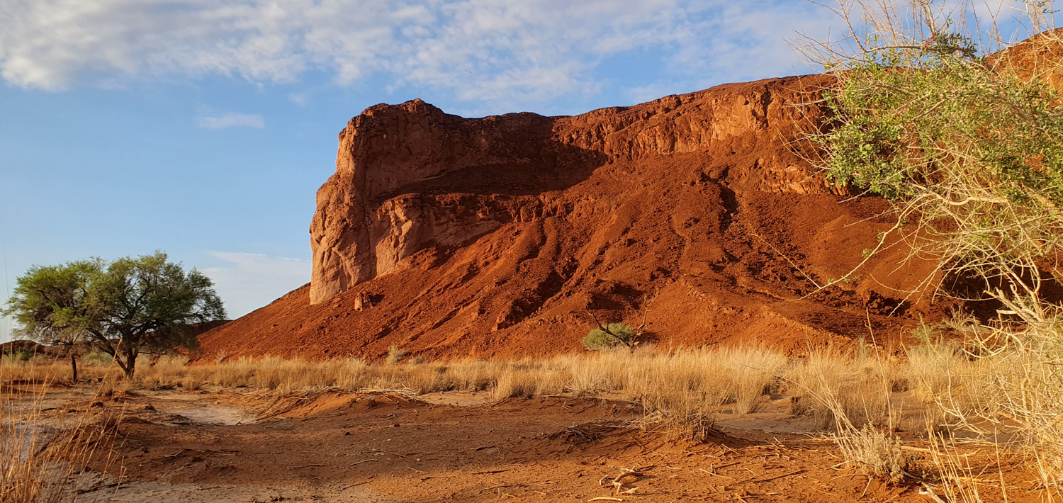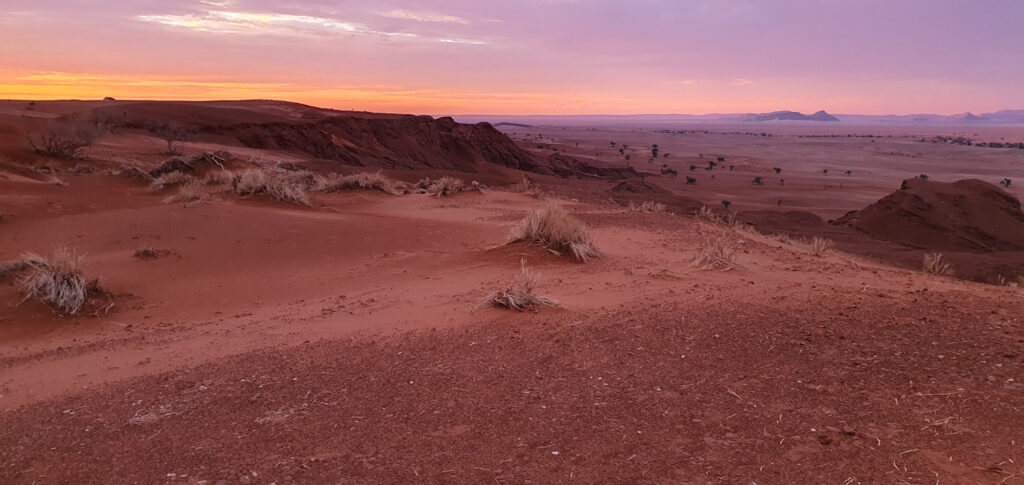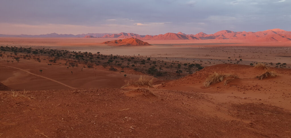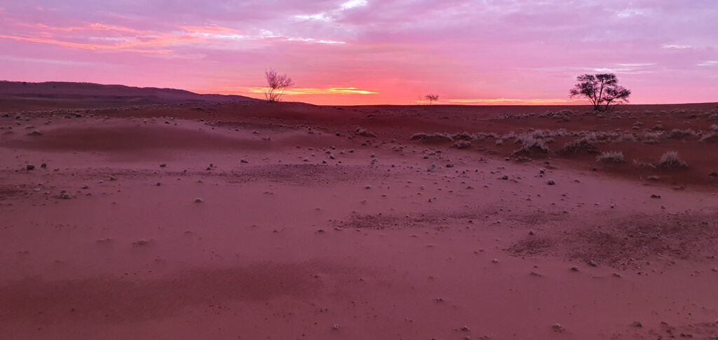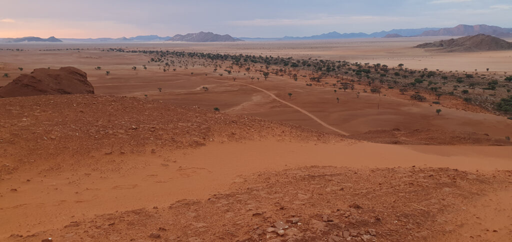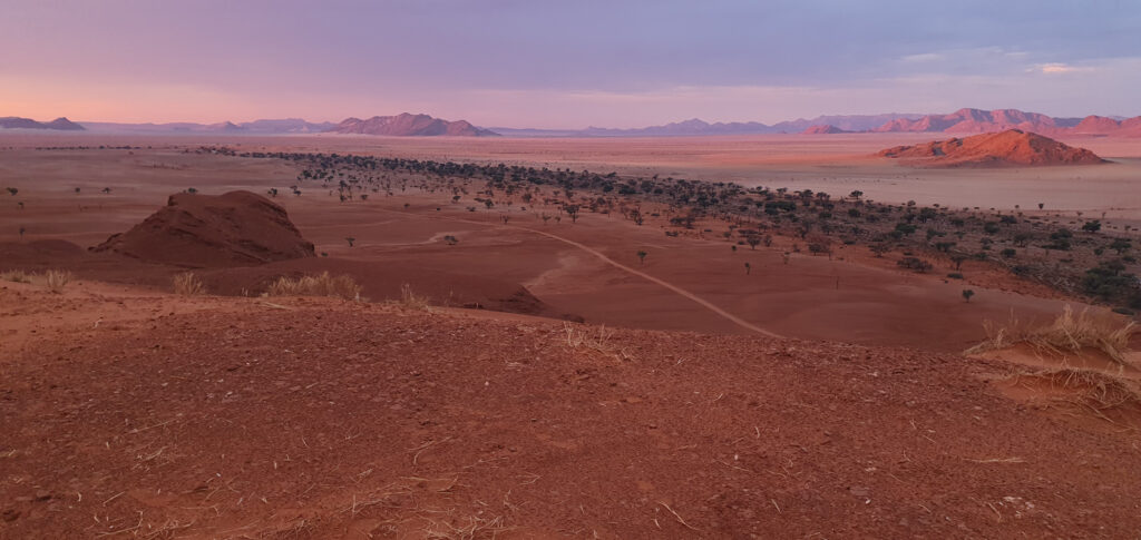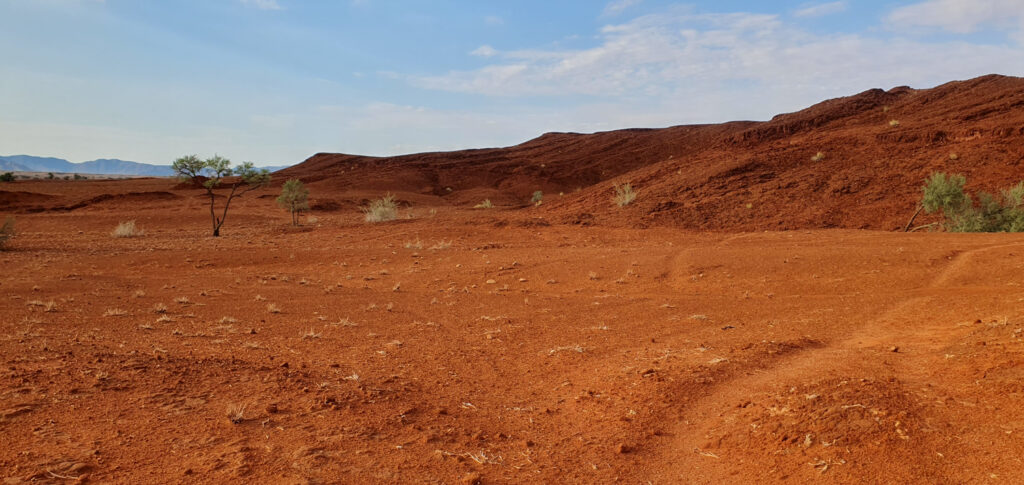 One of the days in Hardap was spent on: hiking to a nearby hill, exploring/hiking the Red area and finding nice spots for flying the drone over it, and ending the day with a spectacular finish – the actual sundowner ride done 100%. The breaks between these activities were spent on showering and recharging the devices, to be ready for anything which nature has for me.