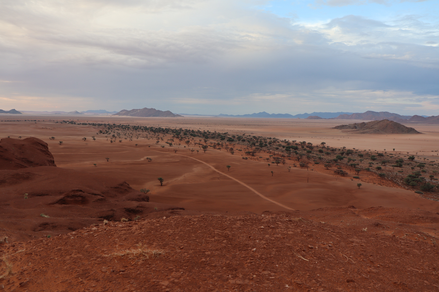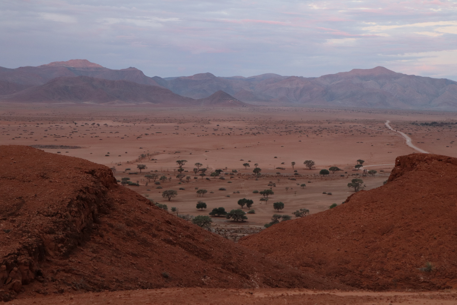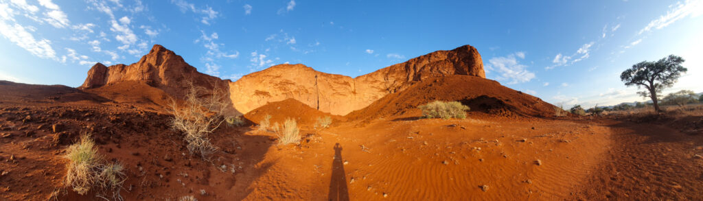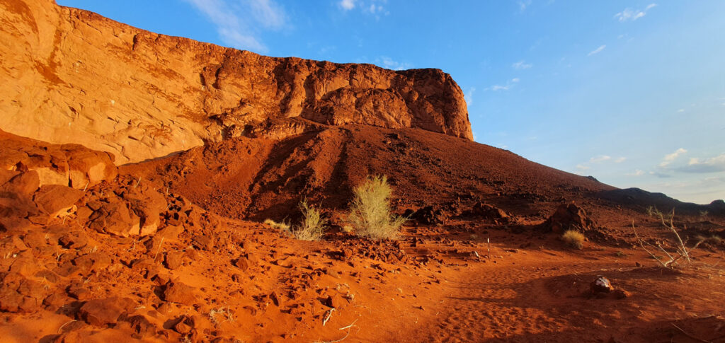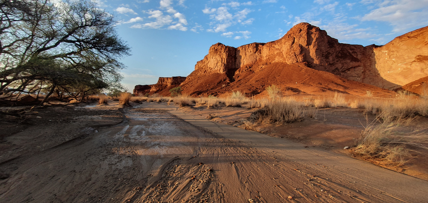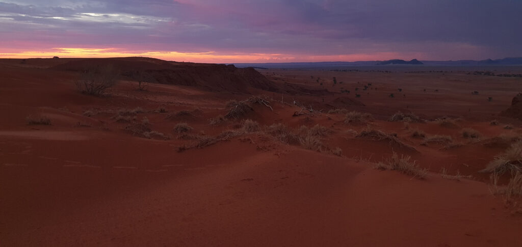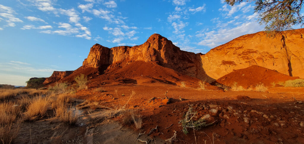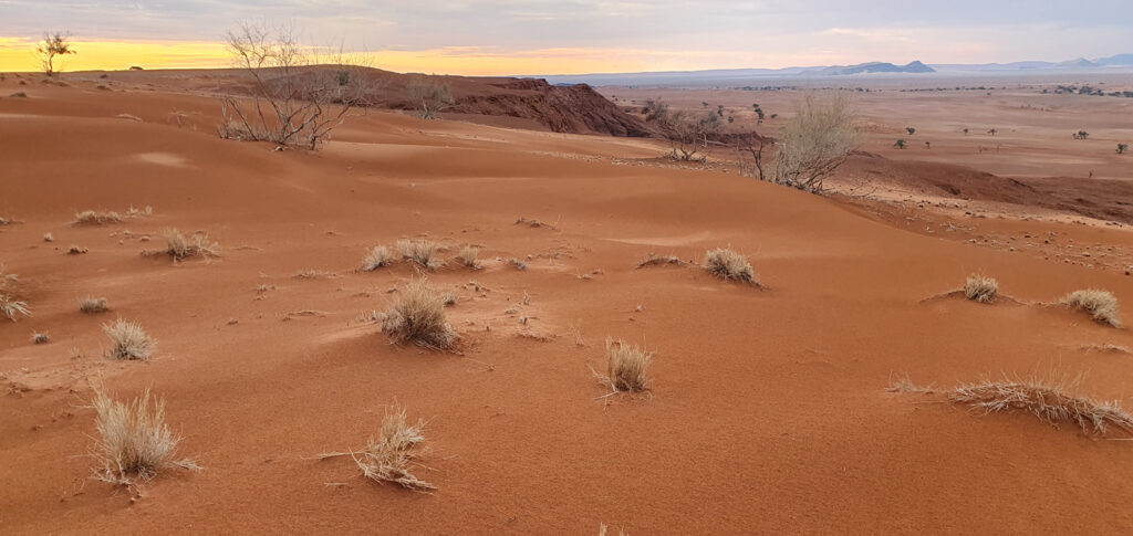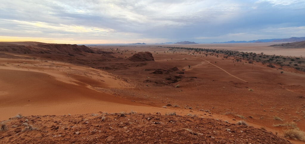 One of the days in Hardap was spent on: hiking to a nearby hill, exploring/hiking the Red area and finding nice spots for flying the drone over it, and ending the day with a spectacular finish – the actual sundowner ride done 100%. The breaks between these activities were spent on showering and recharging the devices, to be ready for anything which nature has for me.