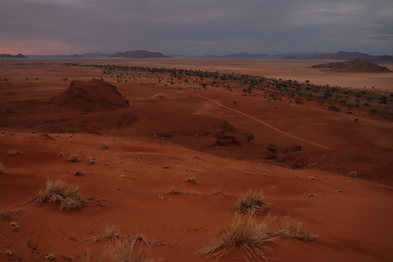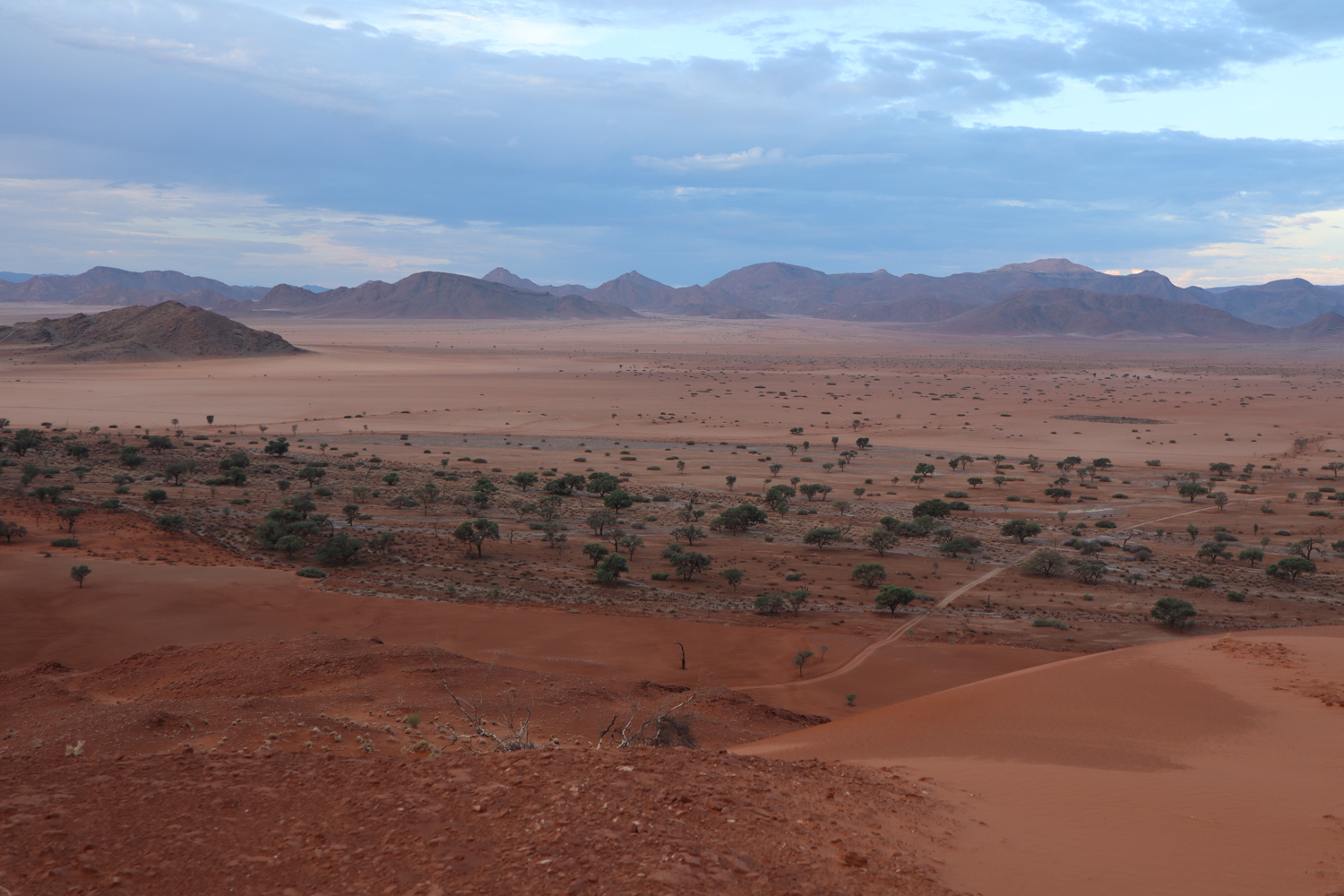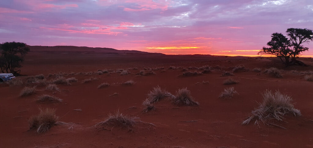 The evening sundowner dunes tour had to be repeated as the previous one was interrupted by the gusts of wind and rain. When I got an offer to just repeat it, I sat down in the safari vehicle again. The first half was identical to the previous one, and I must say that it’s a shame we stopped, as the second one was a spectacular eye treat.