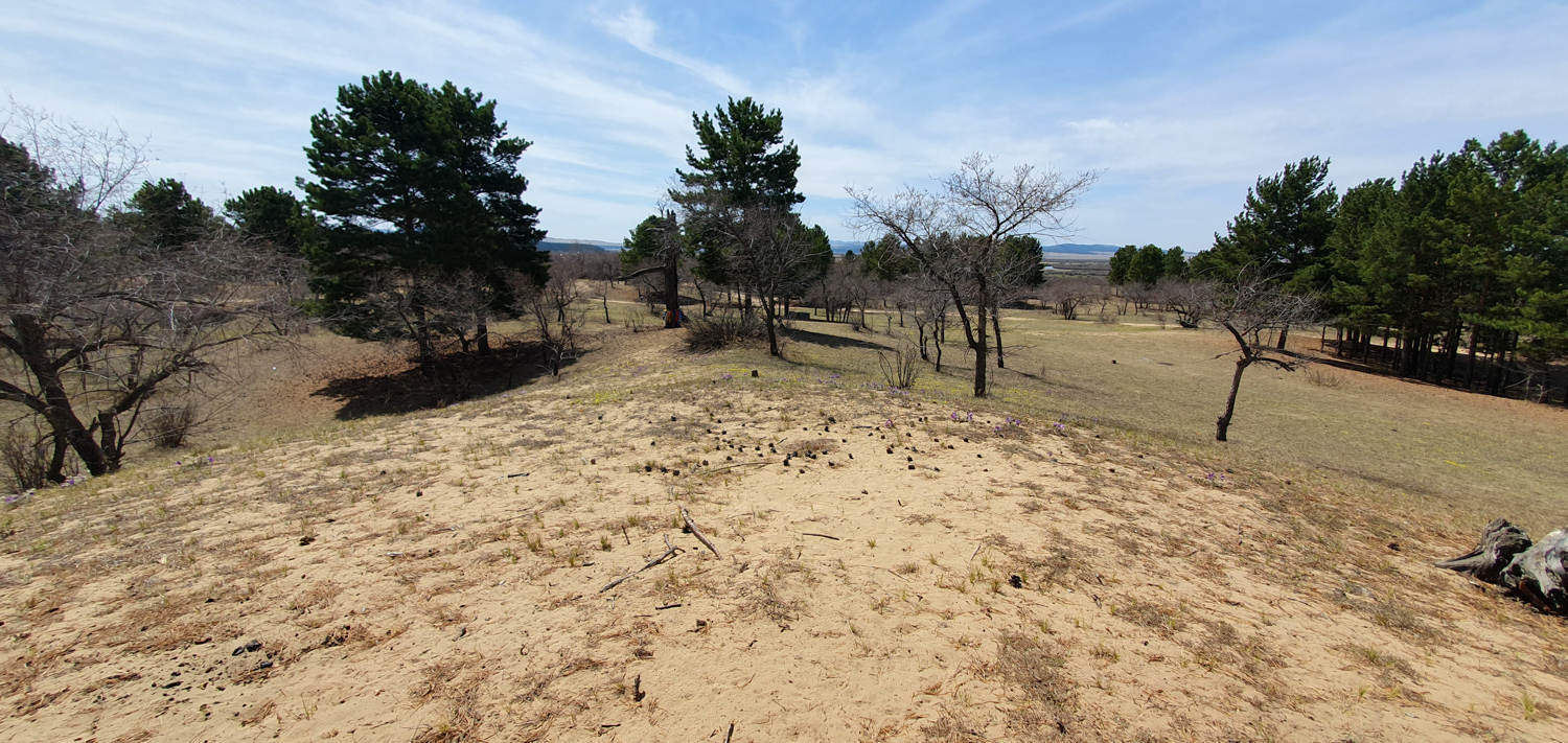 Just plain steppe. It is extremely comfortable to walk on. I would say that it is the best surface I strolled on. It is sandy, with grass, and it was quite dry that day.