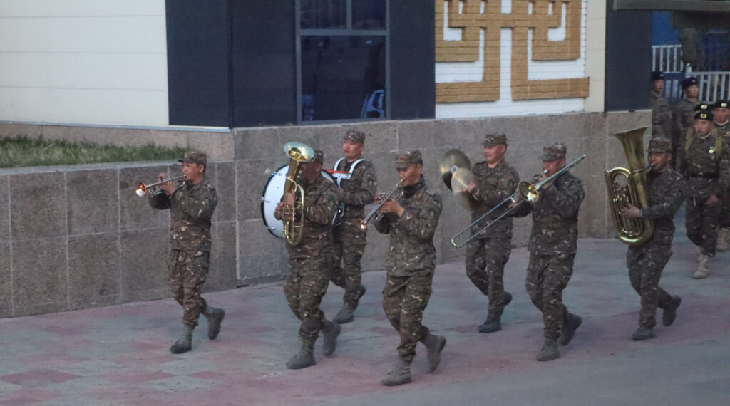 End of the walk was rounded up with an excellent khuushuur again. On the train station I have spend quite a lot of time cooling down my feet, wondering how a leg which was broken 10 months before that trip handled all this without being destroyed in the process and enjoying the train ride back to Ulaanbaatar in peace. When the train departed, a local musical corps were saying goodbye to young soldiers, going to who knows where, fighting for who knows what purpose.