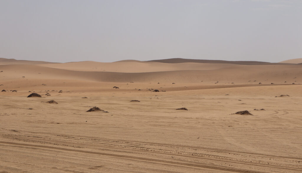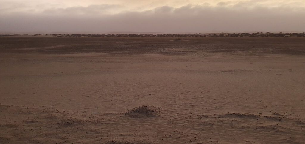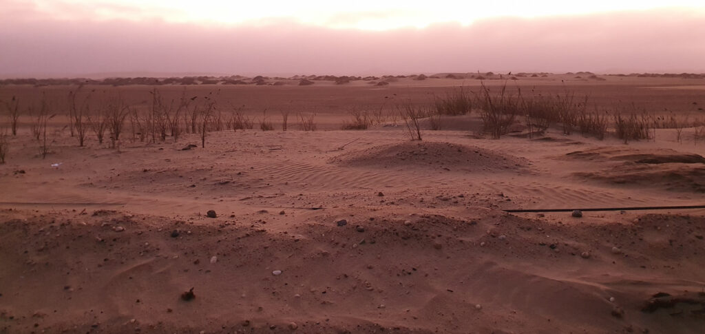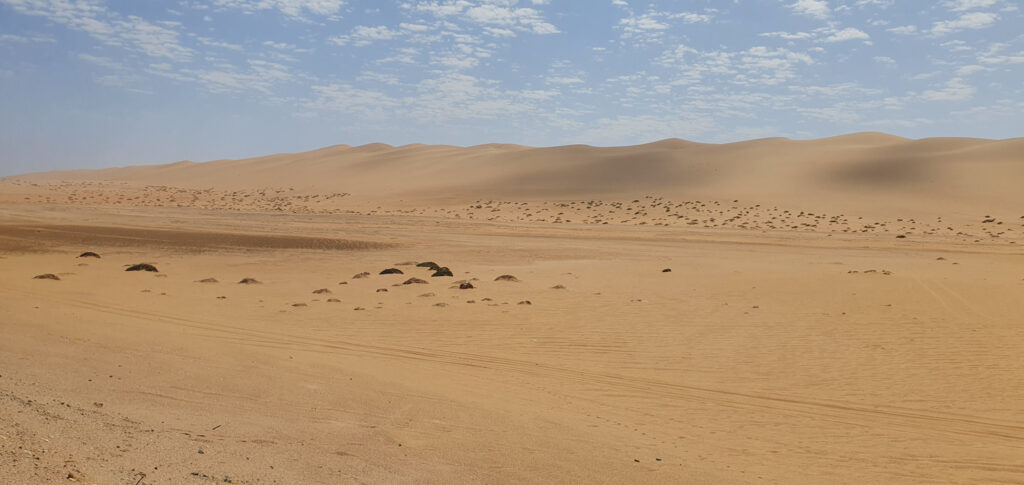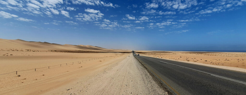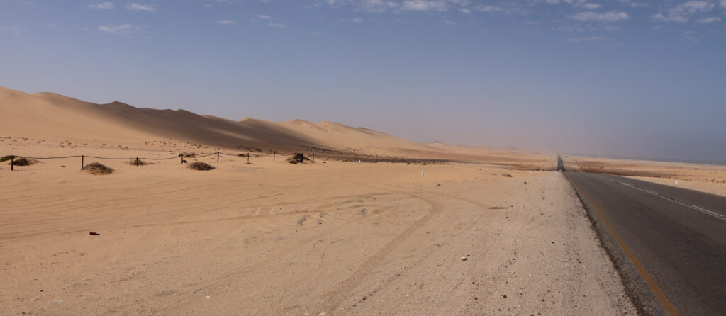 Those 40 kilometers were planned to be crossed during approx 8-10 hours on an entirely exposed, meaning, zero shaded road. Also, between these cities and towards the east there is nothing but the desert sand. The Namib desert is a 150 km wide belt which follows the coast consistently for around 2 000 km. This means that I am, while hiking between these cities, walking between two exactly opposite worlds. I was not sure which brought me more happiness at the time of the walk – the cold vast ocean on the left or the unscrupulous scorching desert on the right.