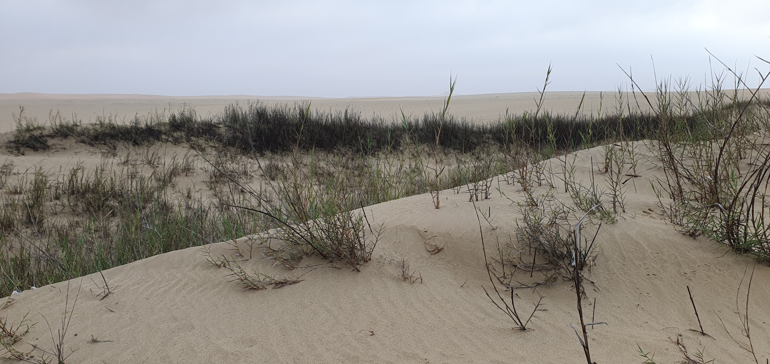 The desert side of my path was superb. The dunes were towering along the coast, shining more and more brightly as noon was approaching.