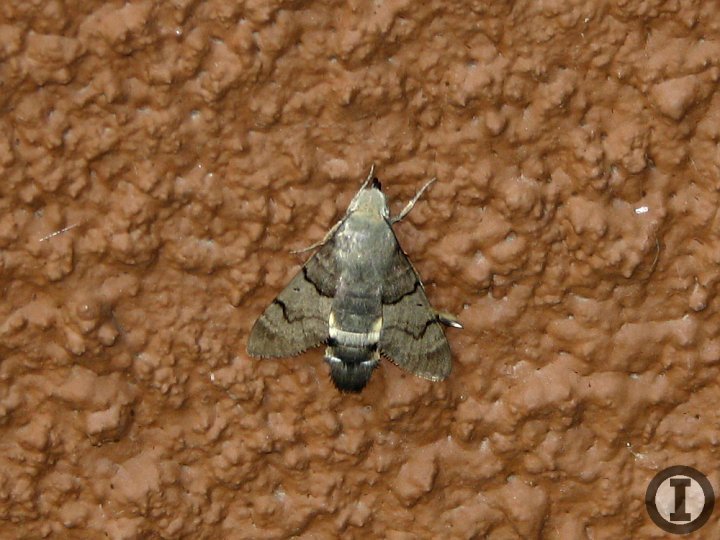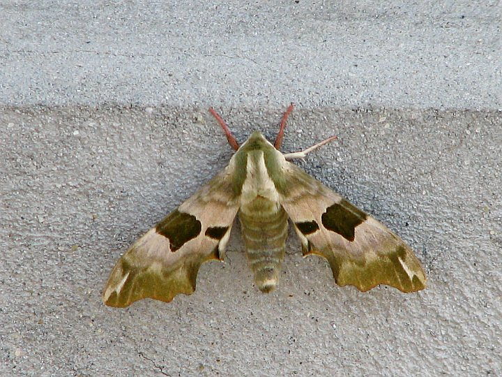 Imago ima raspon krila 11 cm. Sive je boje, sa ornamentiranim prednjim krilima. Stražnja su tamnosiva sa 4 poprečne linije. Zadak ima sivu liniju po sredini, sa poprečnim crnim, bijelim i ružičastim linijama.