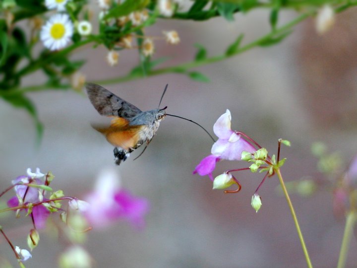 Nektar cvijeća ljevkaste čaške, pogotovo vrsta Convolvulus, Nicotiana, Petunia, Lilium, Phlox i Jasminum.