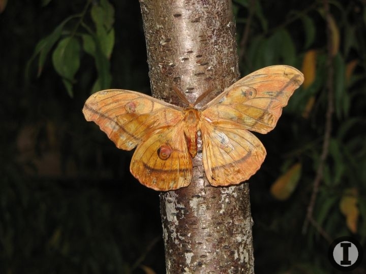 Ženka ima raspon krila 6 cm, mužjak 4 cm. Po krilima se nalaze pjege u obliku oka.